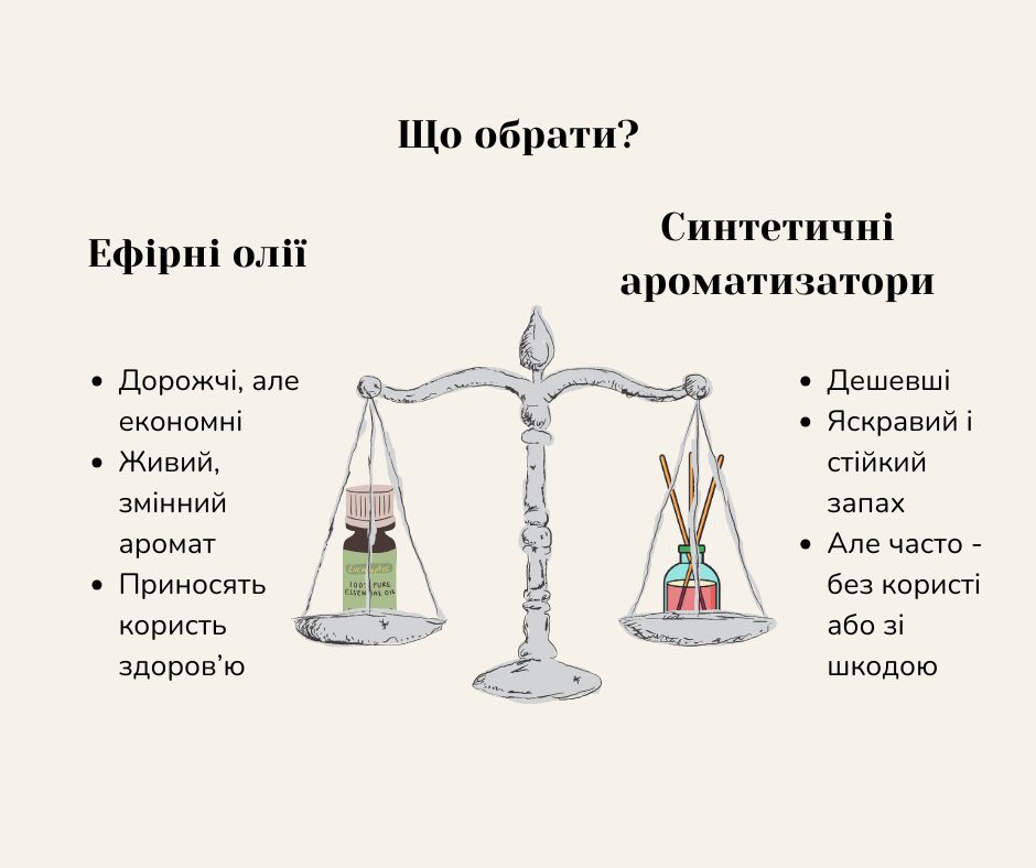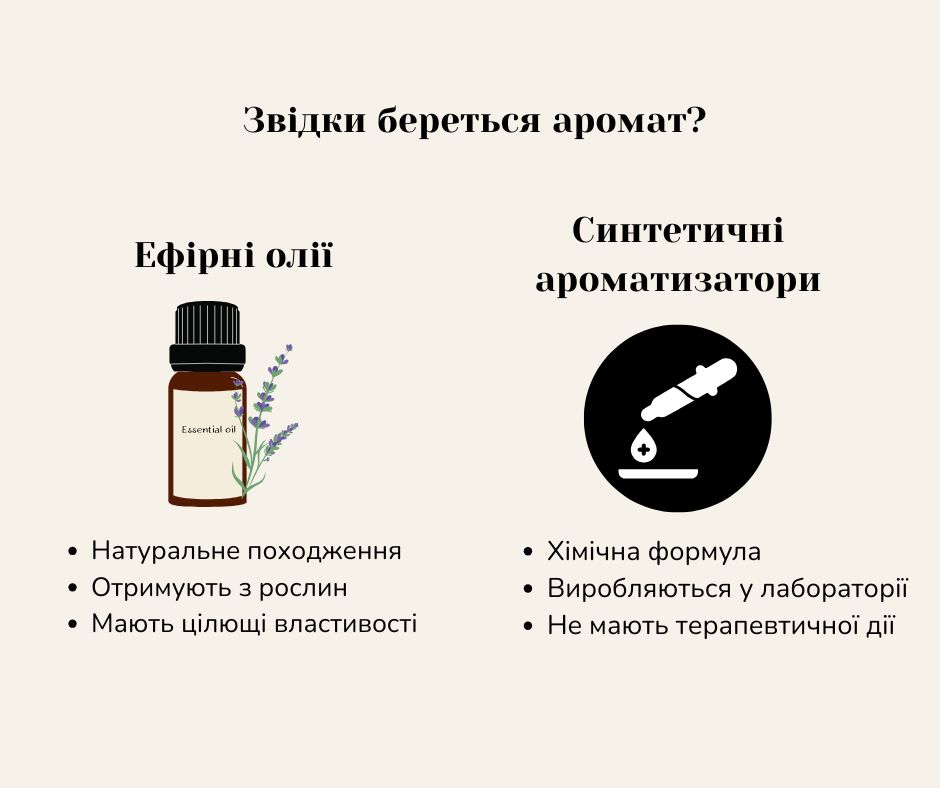 Так, ефірні олії зазвичай коштують дорожче. Але й їх потрібно менше – одна крапля справжньої м’яти або лаванди діє значно сильніше, ніж кілька мілілітрів синтетичного аромату.