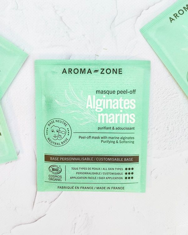 Маска містить морські альгінати, діатомову землю та органічний кукурудзяний крохмаль.